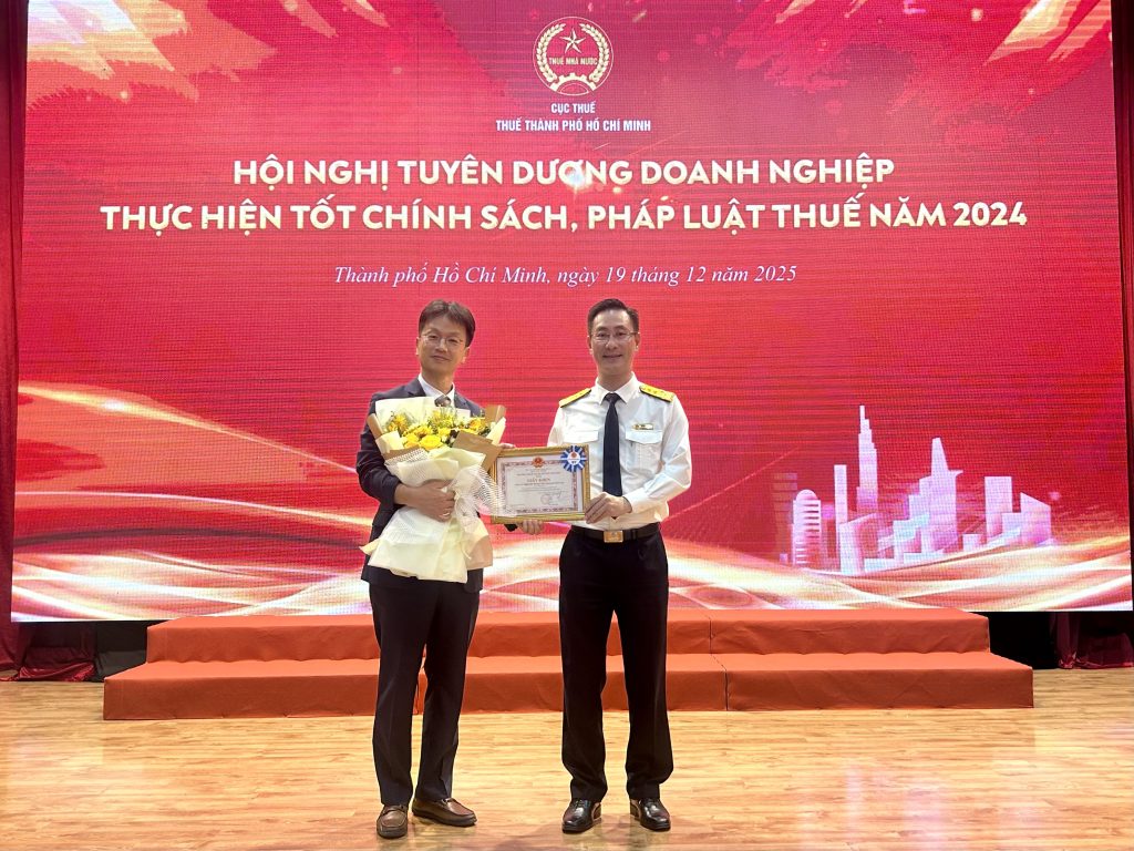 (Tuổi Trẻ) – Sáng 19-12, Cục Thuế TP.HCM tổ chức Hội nghị tuyên dương doanh nghiệp thực hiện tốt chính sách, pháp luật thuế năm 2024. Tại sự kiện, Ceragem Việt Nam vinh dự nhận bằng khen, tiếp tục được ghi nhận là doanh nghiệp thực hiện tốt nghĩa vụ thuế.