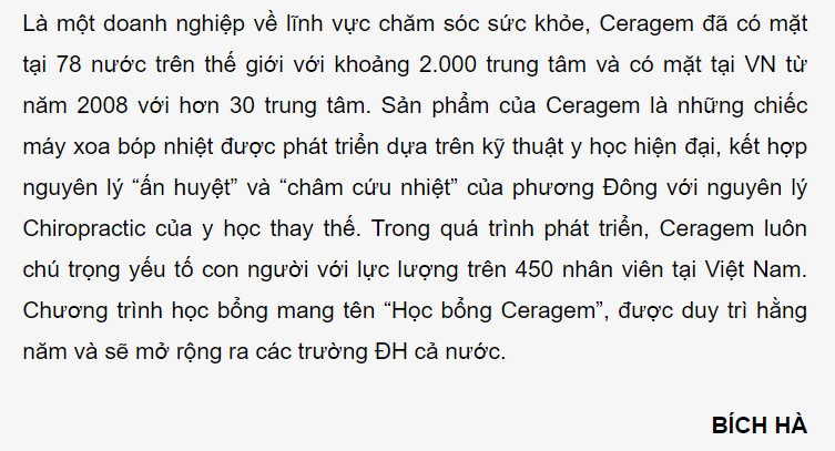 (Nguồn: Công ty TNHH MTV Ceragem Việt Nam)