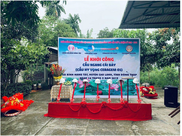 On 2019 September 16th, Ngang Cai Bay bridge (1st Ceragem Hope Bridge) groundbreaking ceremony held in Binh Hang Tay commune, Cao Lanh district, Dong Thap province with total construction cost of over 500 million VND, in which 220 million VND contributed from Ceragem Vina.