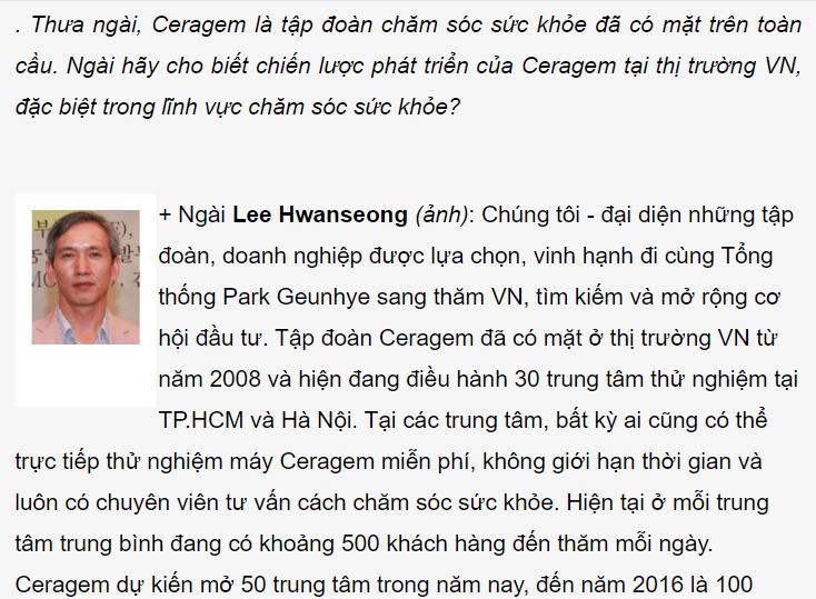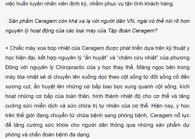 (Nguồn: Công ty TNHH MTV Ceragem Việt Nam)