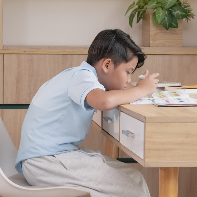 Trẻ em ngồi học, bấm điện thoại sai tư thế