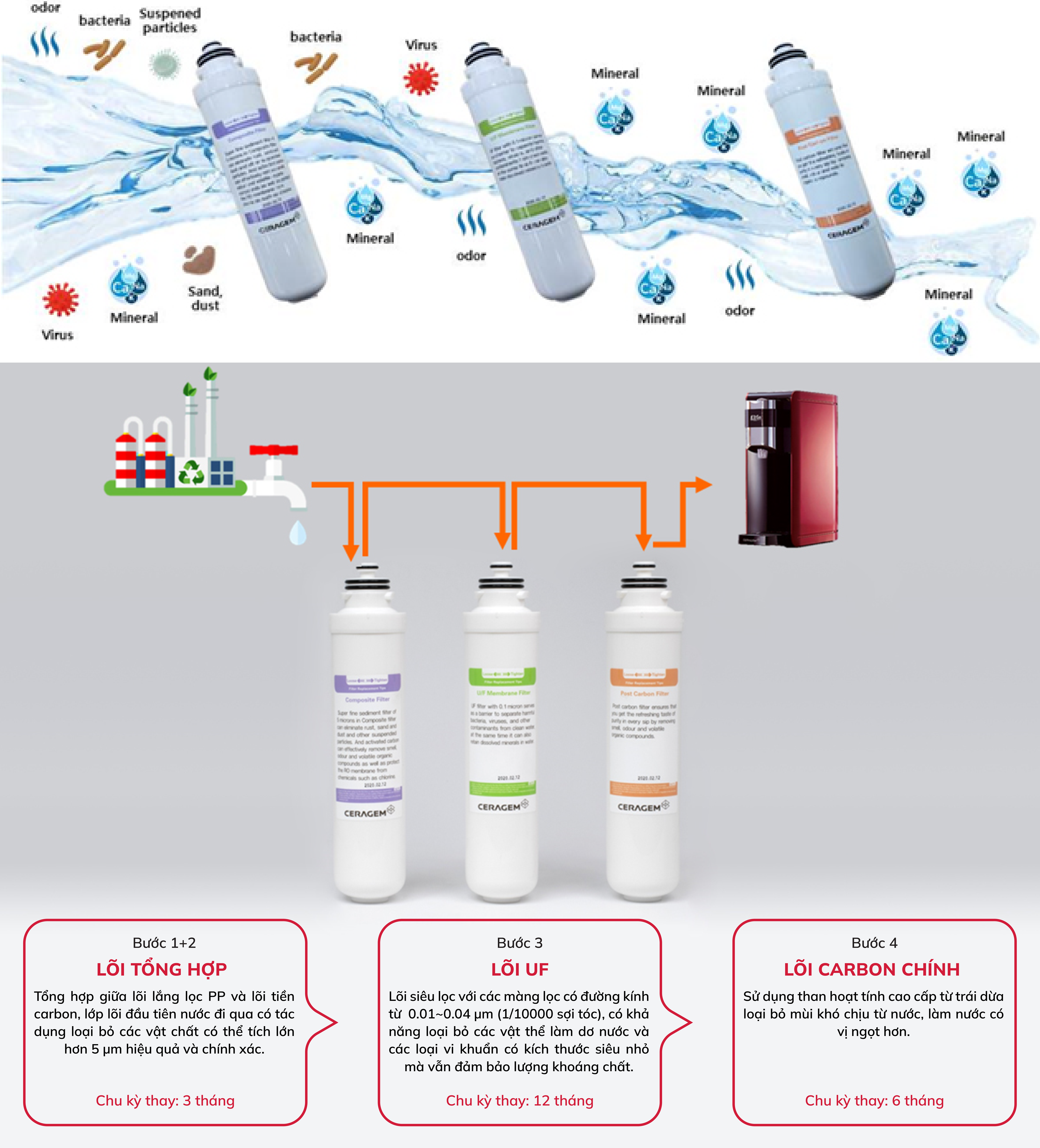 Lăng lọc PP > Tiền carbon > UF > Lọc carbon chính