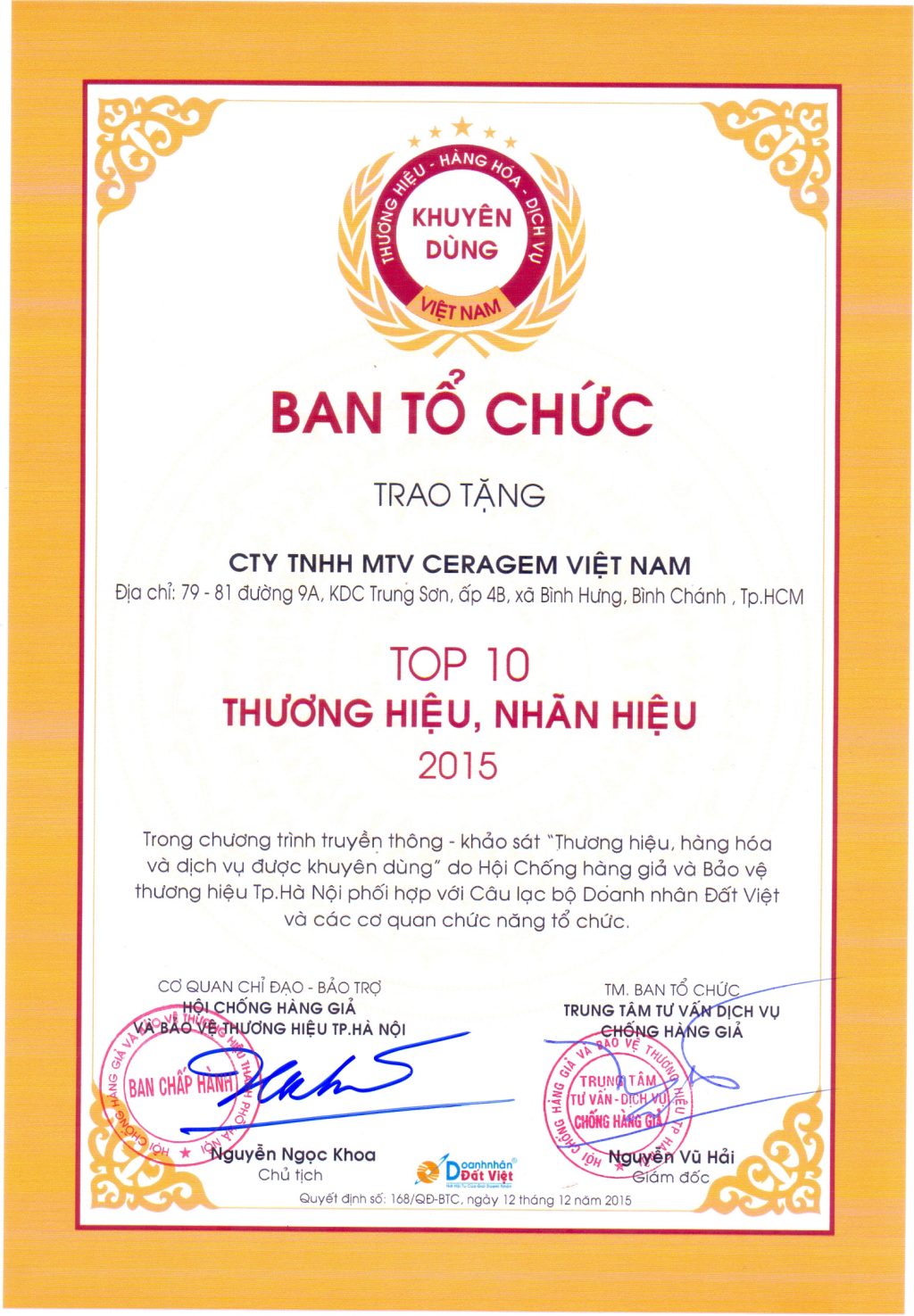 Top 10 Thương Hiệu, Nhãn Hiệu 2015
